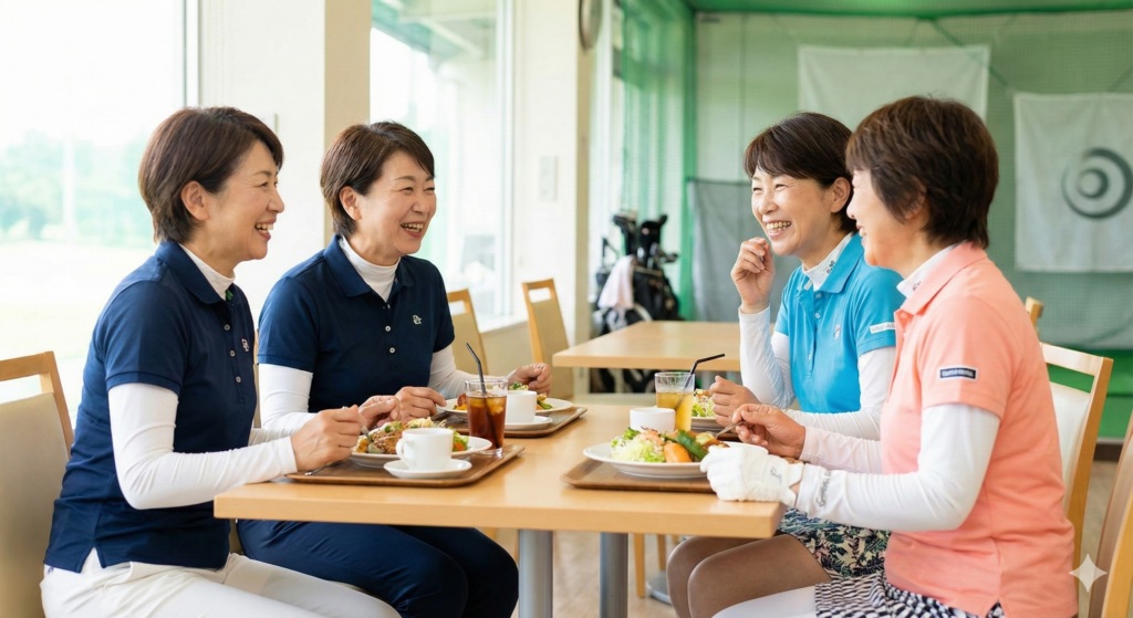 レッスン終了後のランチや、ラウンドレッスンを仲間同士で参加するなど、自然な形でコミュニティが形成されています。「同じゴルフを習う仲間ができて、娘ができたみたいです」(50代会員様)