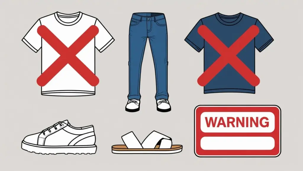 サンダル・ジーンズ禁止